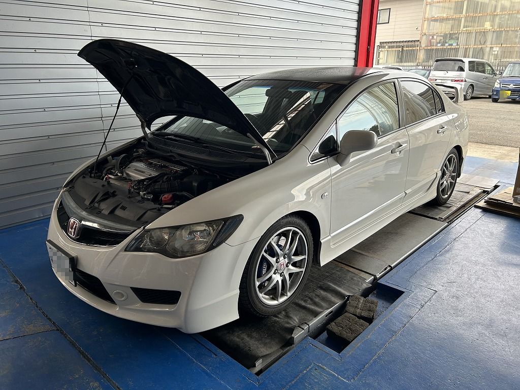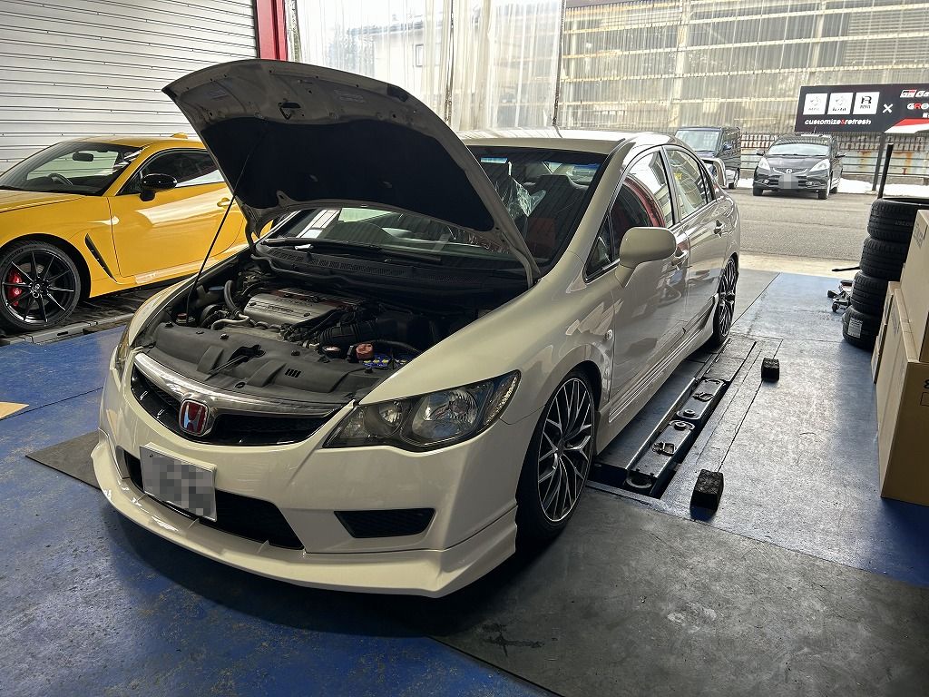 シビックタイプRはオイル交換でご来店くださいました。見ての通り悪天候の中でのご来店に感謝いたします。4月29日のSUGO走行会にもエントリーいただきました。初のサーキット走行でタイプRの本来の性能を体感出来るといいですね。当店からのエントリーを検討されてる方は早めのご連絡をお願いします。45台枠なので早めに定員に達してしまうかもしれませんので。