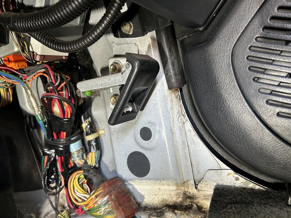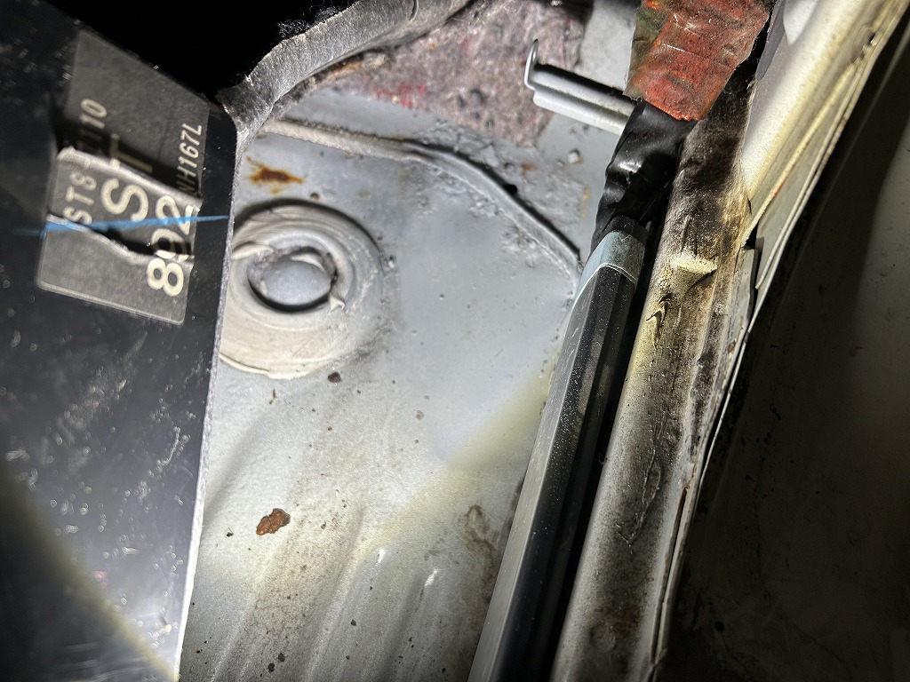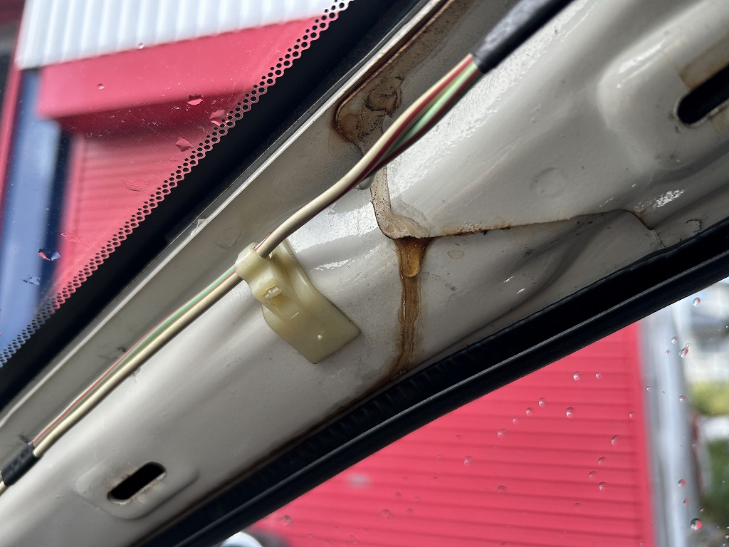 こちらはDC2インテグラのフロントピラー雨漏れ。ルーフから入った水が内ピラーを伝ってフロアに滴ってました。