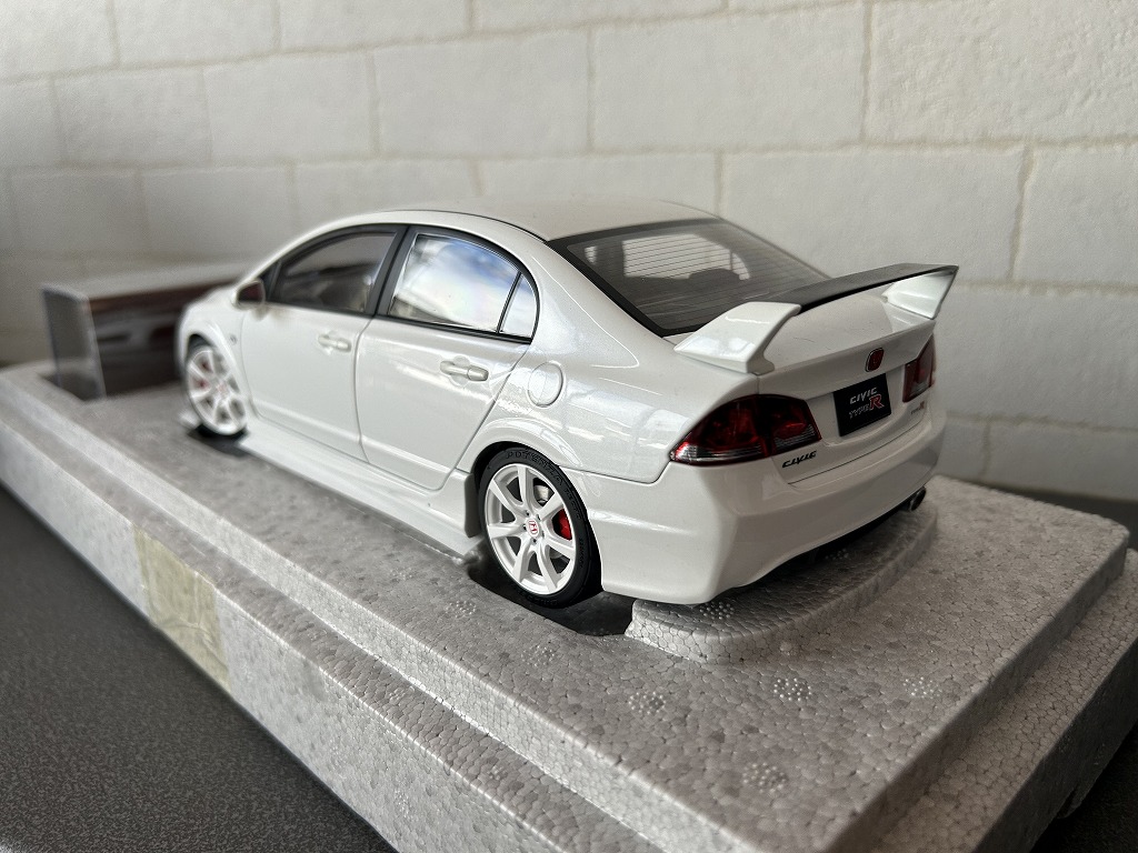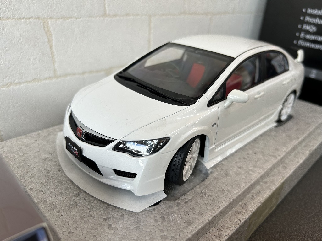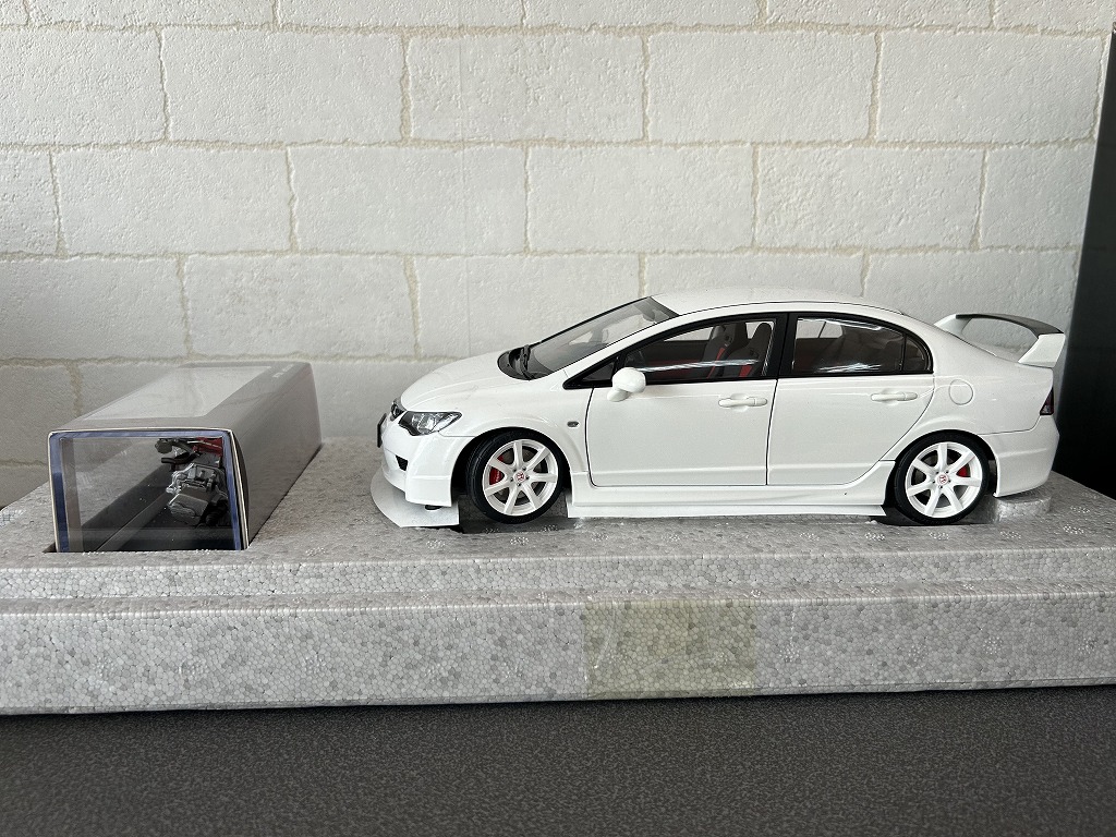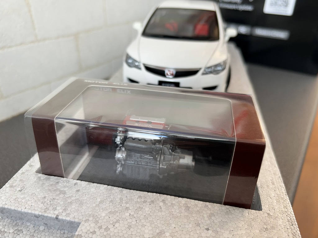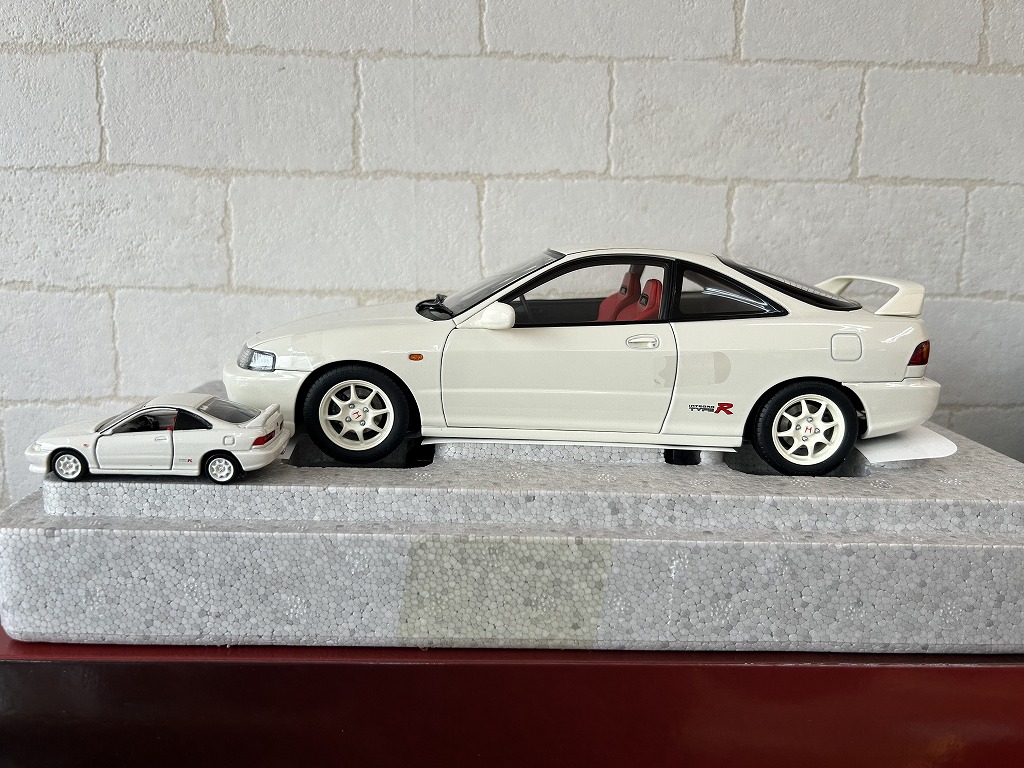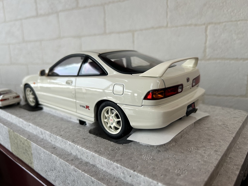 MOTORHELIX製1/18モデルカー、インテグラタイプR96spec、シビックタイプR(FD2後期、K20エンジン付き)モデルカー各ラスト1台となります。トミカ1/62との比較画像になります。ドア、ボンネットなど開閉します。インテグラ、シビック好きなかた、お部屋のインテリアなどにいかがでしょうか。インテグラ¥39,800(税別)/シビック¥45,000(税別)