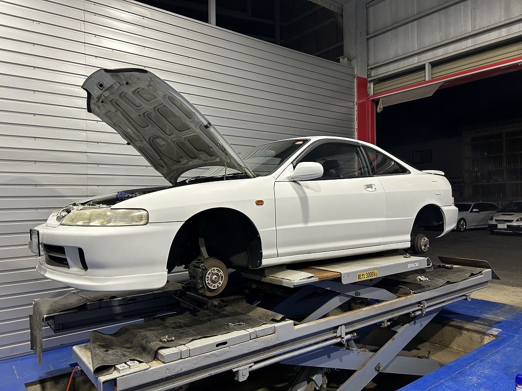 インテグラはブレーキパイプ修理をさせていただきました。腐食で穴が開きブレーキオイルが漏れてしまいました。純正パイプは生産終了のため修理対応させていただきました。