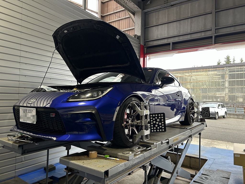 先日車高調を取り付けたGR86は仕上げの車高調整とアライメント調整をさせていただきました。