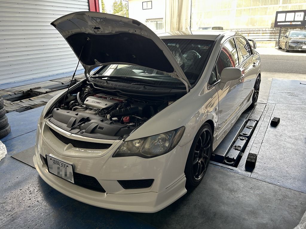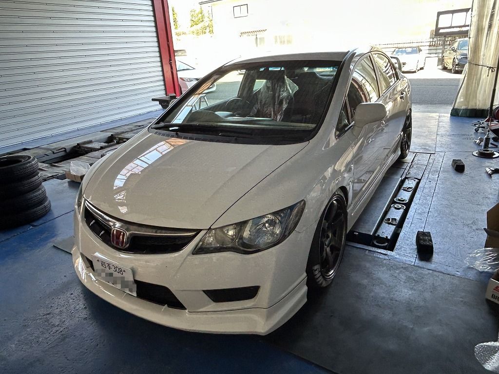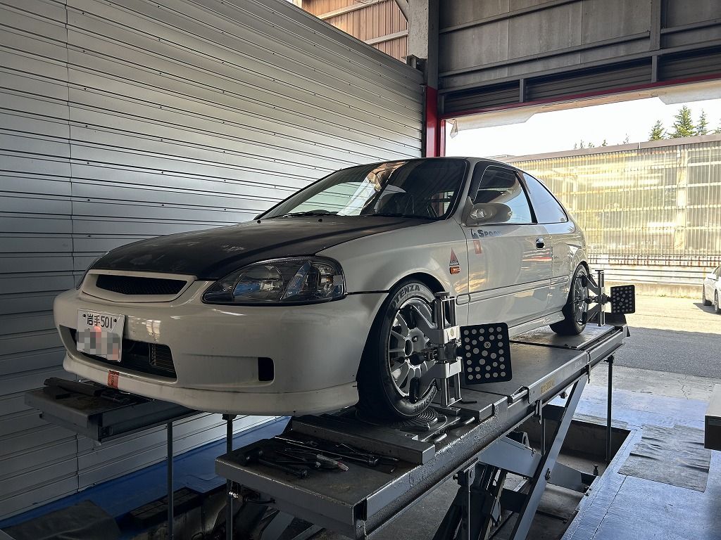 SUGOの走行会まで一週間となり作業も追い込みとなっております。FL5は当店のスプリングを組み付けしてアライメント調整をさせていただきました。EK9もポテンザRE-71RZを装着してアライメント調整をさせていただきました。2台とも走行準備完了です。