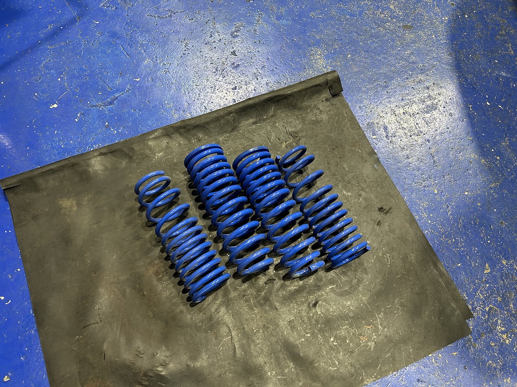 積雪によりフロントスポイラーや車体下部損傷を考えると純正戻しは間違いないですね。純正スプリングって長くて組み付けが大変です。