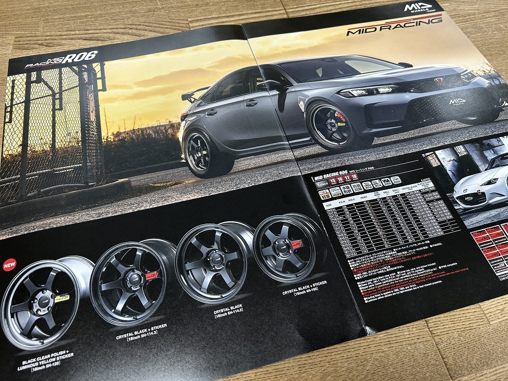 MIDレーシングR06のシビックタイプR用、18インチ9.5J P.C.D120インセット60が1月末頃入荷します。スタッドレスタイヤにもピッタリなサイズとお手頃価格のホイールです。こちらのホイールサイズは純正のホイールナット対応となります。