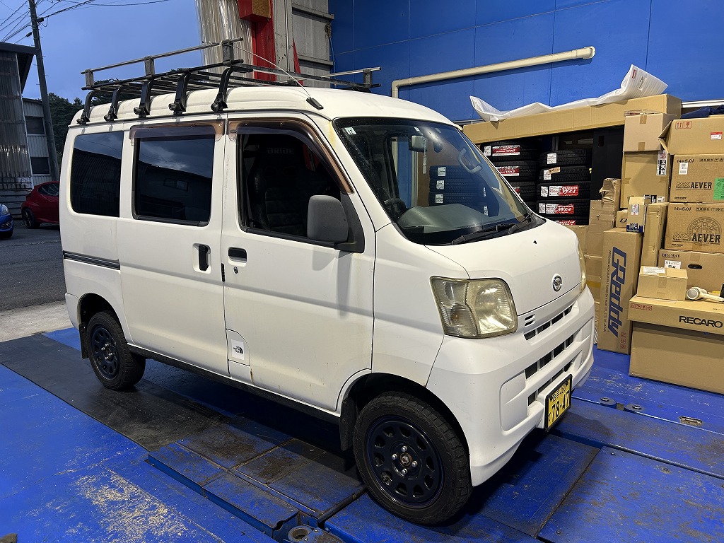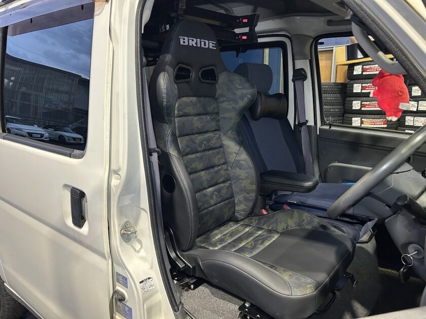 11月には入りましたがサーキット走行などの話が盛り上がってました。みなさん走り納めに向けて計画中の様です。こちらの働く車、ハイゼットにブリッドのリクライニングシート装着。アウトドアも趣味のオーナーさんが選ばれたのはカモフラージュ柄。長時間走行時の疲労軽減との事で装着させていただきました。シートヒーターも装備でこれからの季節も快適です。