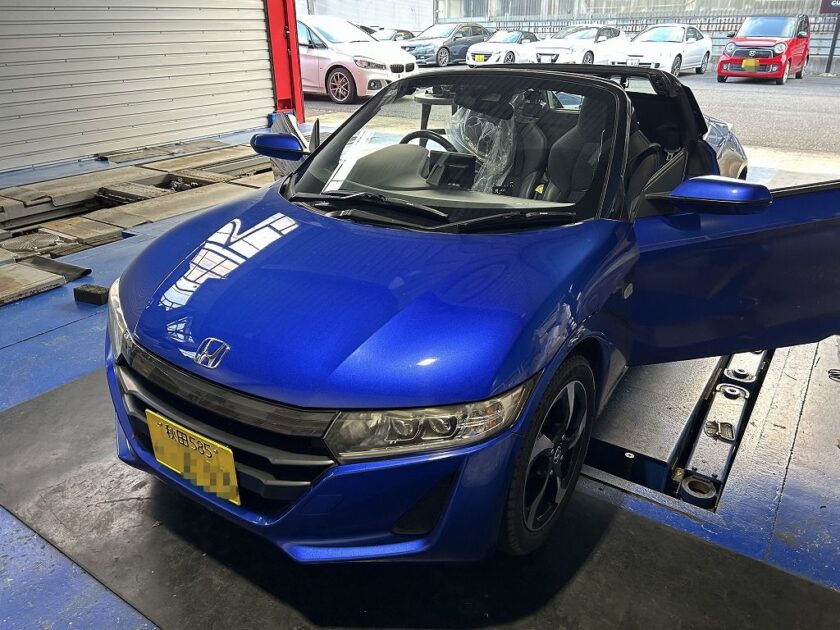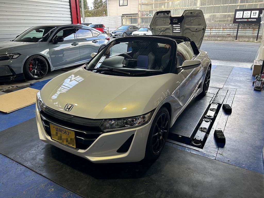 S660まオイル交換でご来店くださいました。スタッドレスタイヤも装着して冬もガンガン走行されてるS660です。